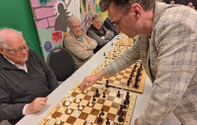 Geplaatst op: 6 april 2026Ter ere van het 100 jarig bestaan van ’t Pionneke dit jaar vond er op dinsdag 31 maart een simultaan plaats tegen de Nederlandse schaaklegende Loek van Wely. 29 Pionneke leden namen het op tegen de 8-voudig Nederlands kampioen.